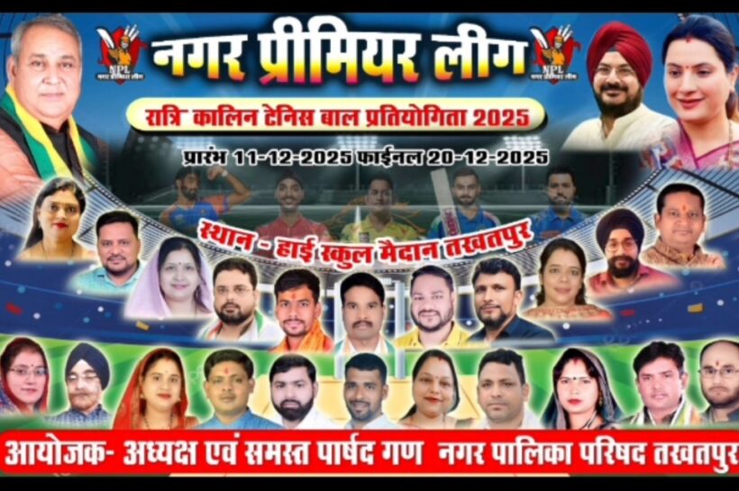 खिताबी भिड़ंत के लिए वार्ड 4 एवं वार्ड 7 खेलेगी 15/15 ओवर का मेगा फाइनल मुकाबला बृजपाल सिंह हूरा…✍️ तखतपुर। नगर प्रीमियर लीग रात्रि कालीन फ्लड लाइट क्रिकेट प्रतियोगिता का आयोजन नगर पालिका तखतपुर द्वारा कराया जा रहा है जिसका आज मेगा फाइनल मुकाबला वार्ड क्रमांक 4 एवं वार्ड क्रमांक 7 के मध्य शाम 7…
